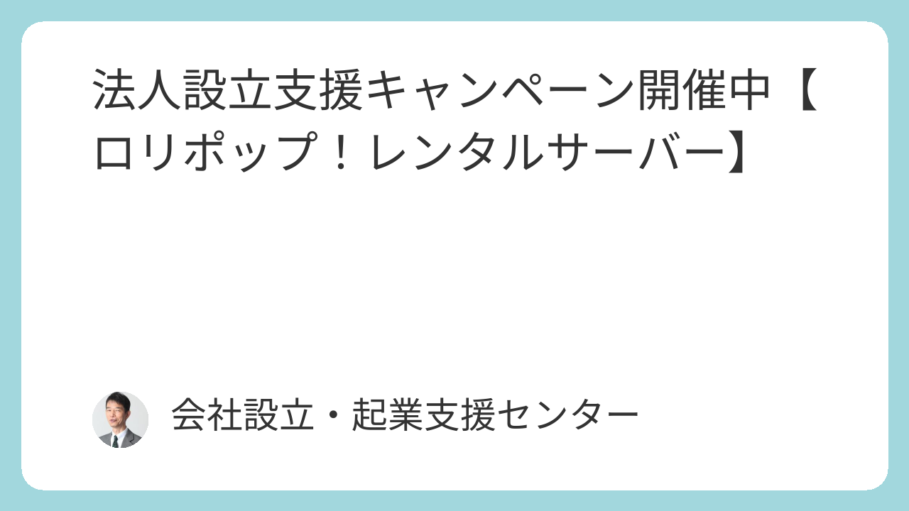 レンタルサーバー・ロリポップは、設立1年未満の法人を対象に「法人設立支援キャンペーン」を開催中です。